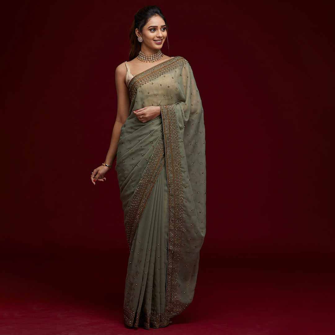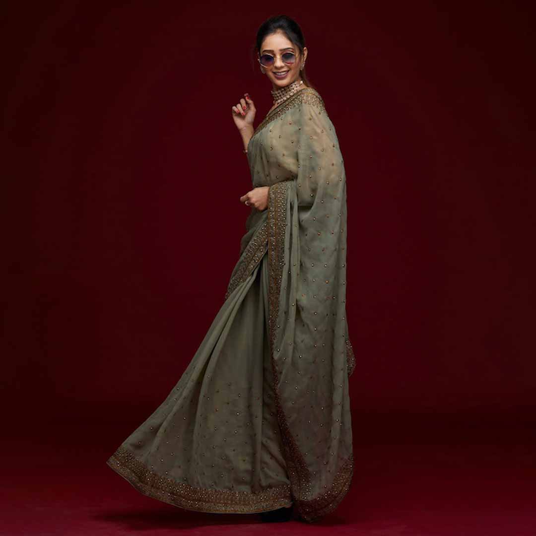 The blouse worn by the model might be for modelling purpose only. Check the image of the blouse piece to understand how the actual blouse piece looks like.