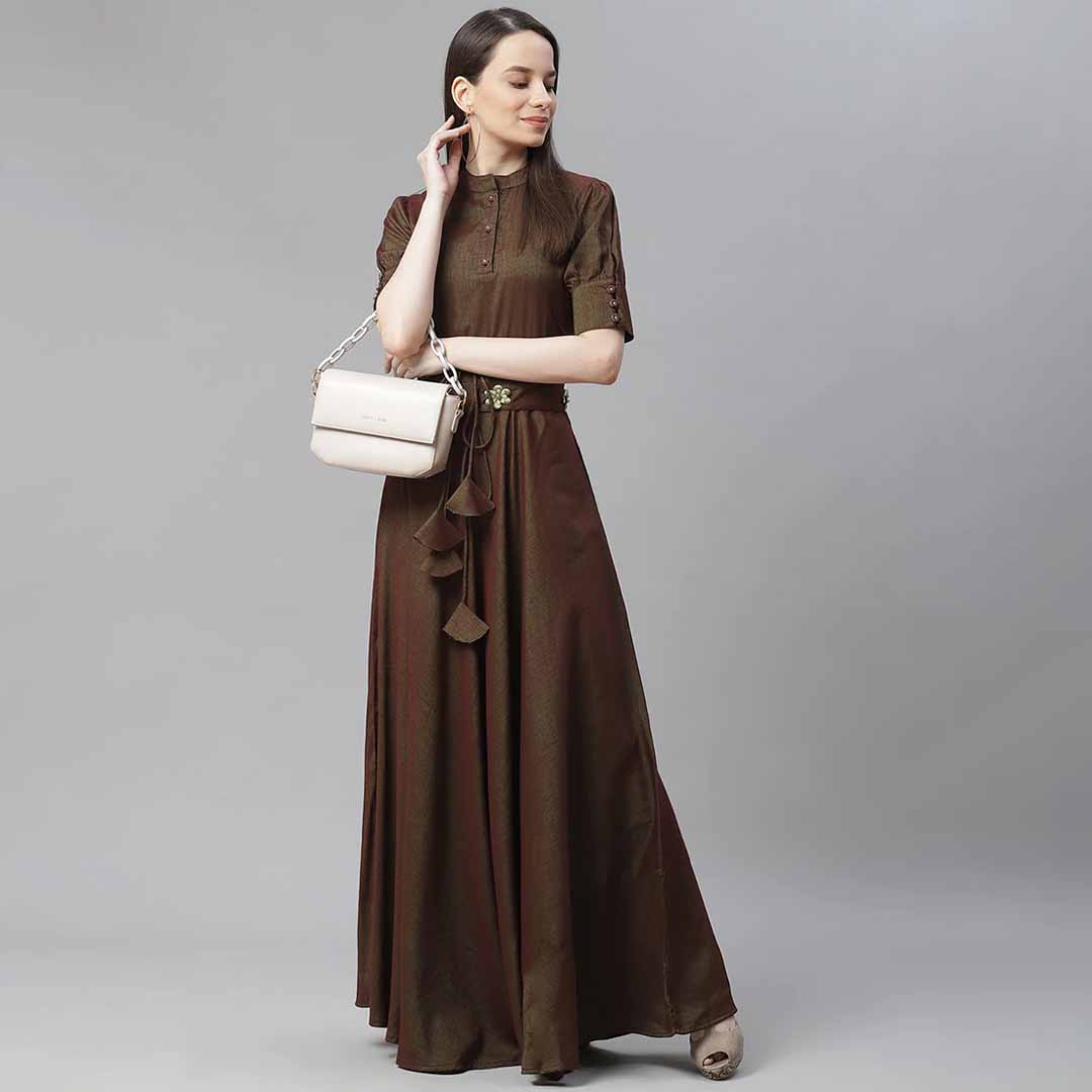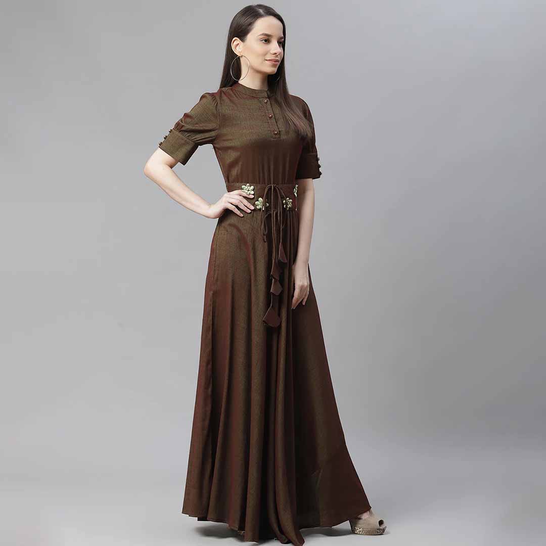 tie front solid maxi dress trend : tie back looking for some awesome collection of dresses? well, lay your hands on this dress and also get the option of choosing from green colour. dress up in a soothing pattern and don this dress made of rayon material.
