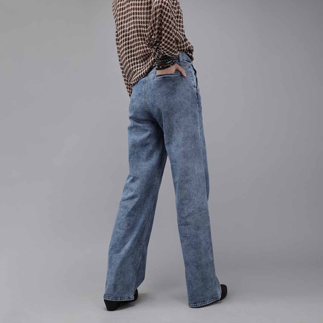 Size & Fit Narrow Wide Leg Stretchable The model (height 5'8") is wearing a size 28 Material & Care 98.5% cotton 1.5% elastane Machine-wash
