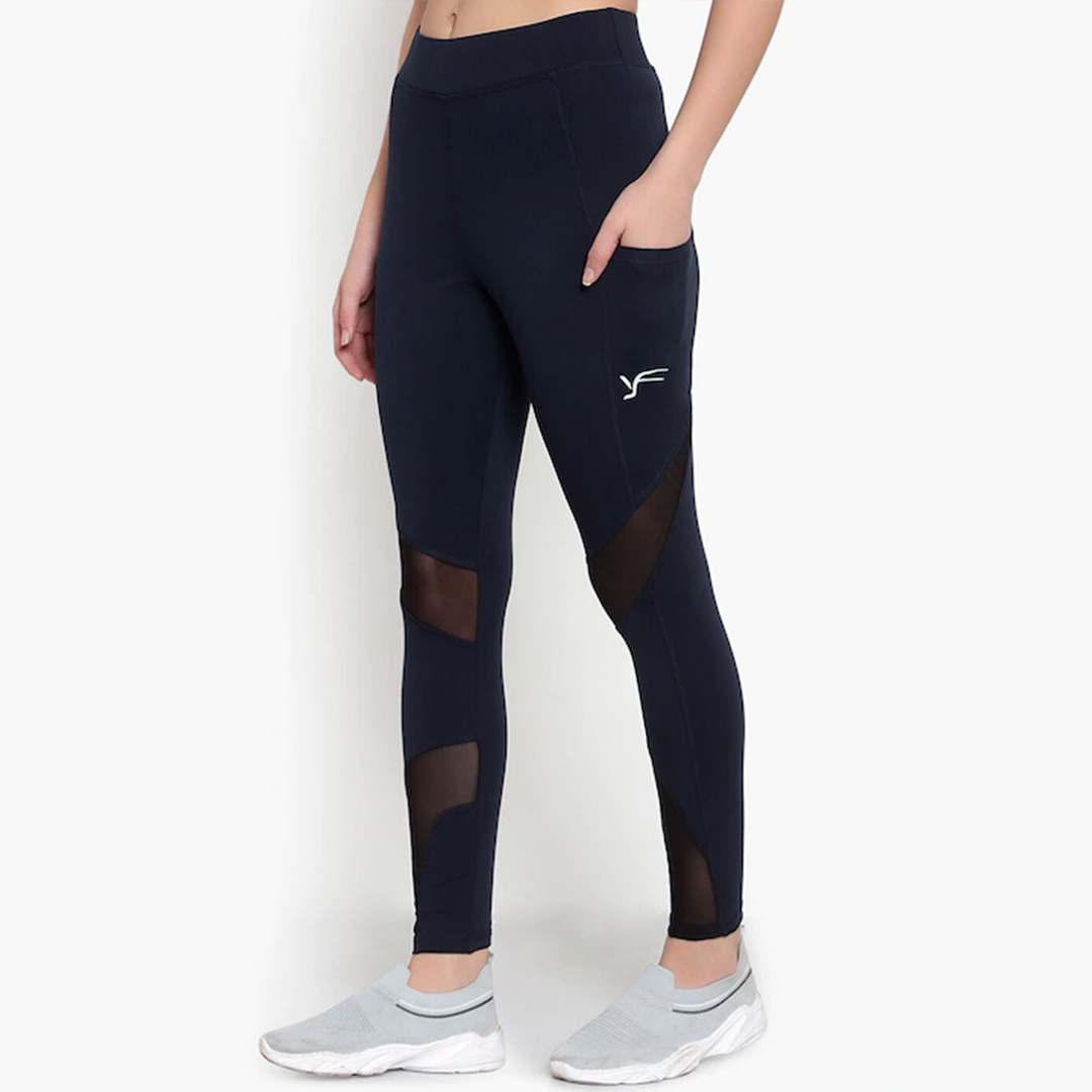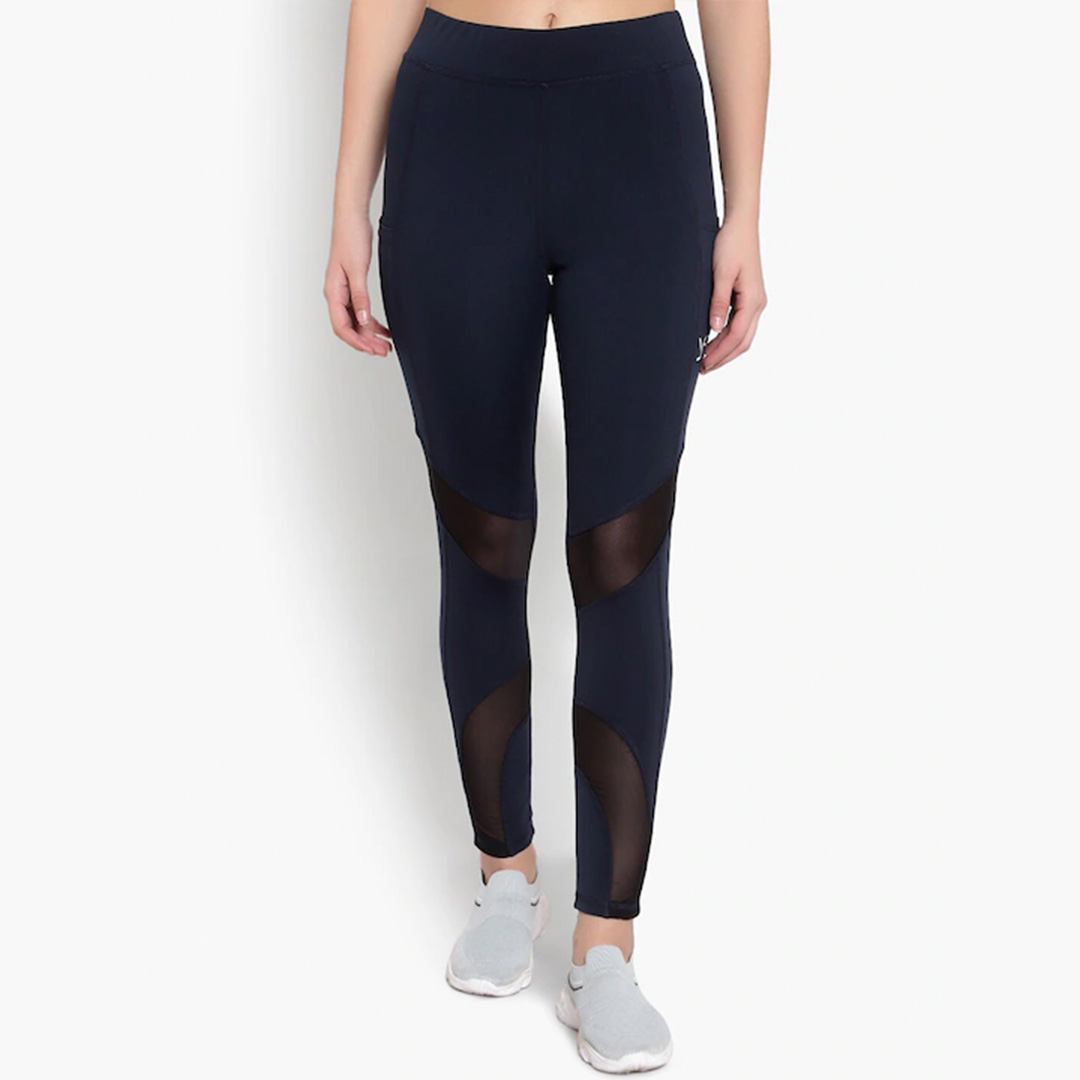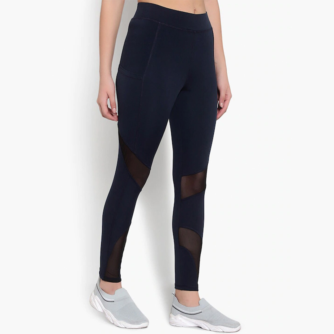 Navy Blue patterned slim-fit ankle-length Mid-rise Activewear