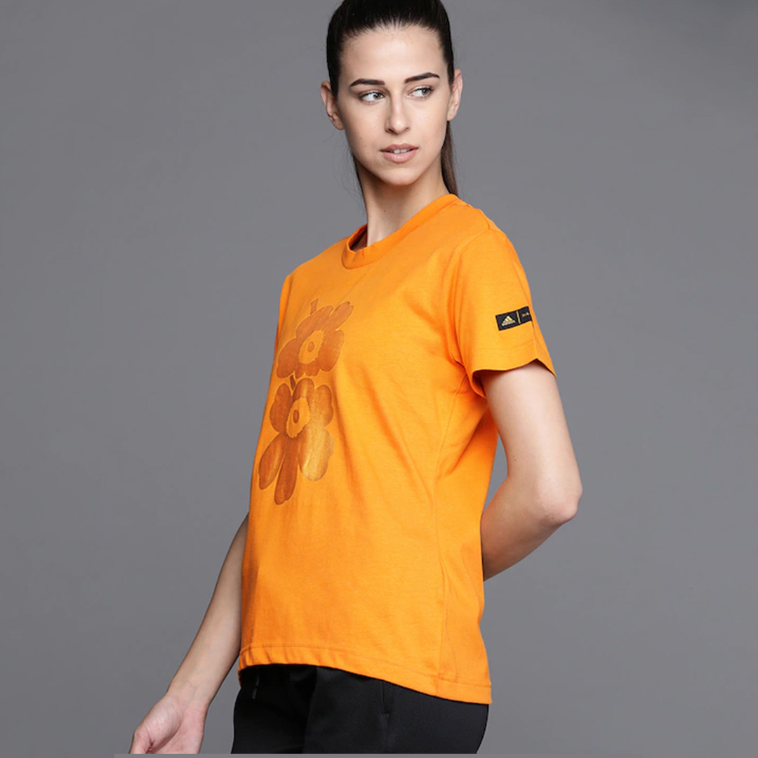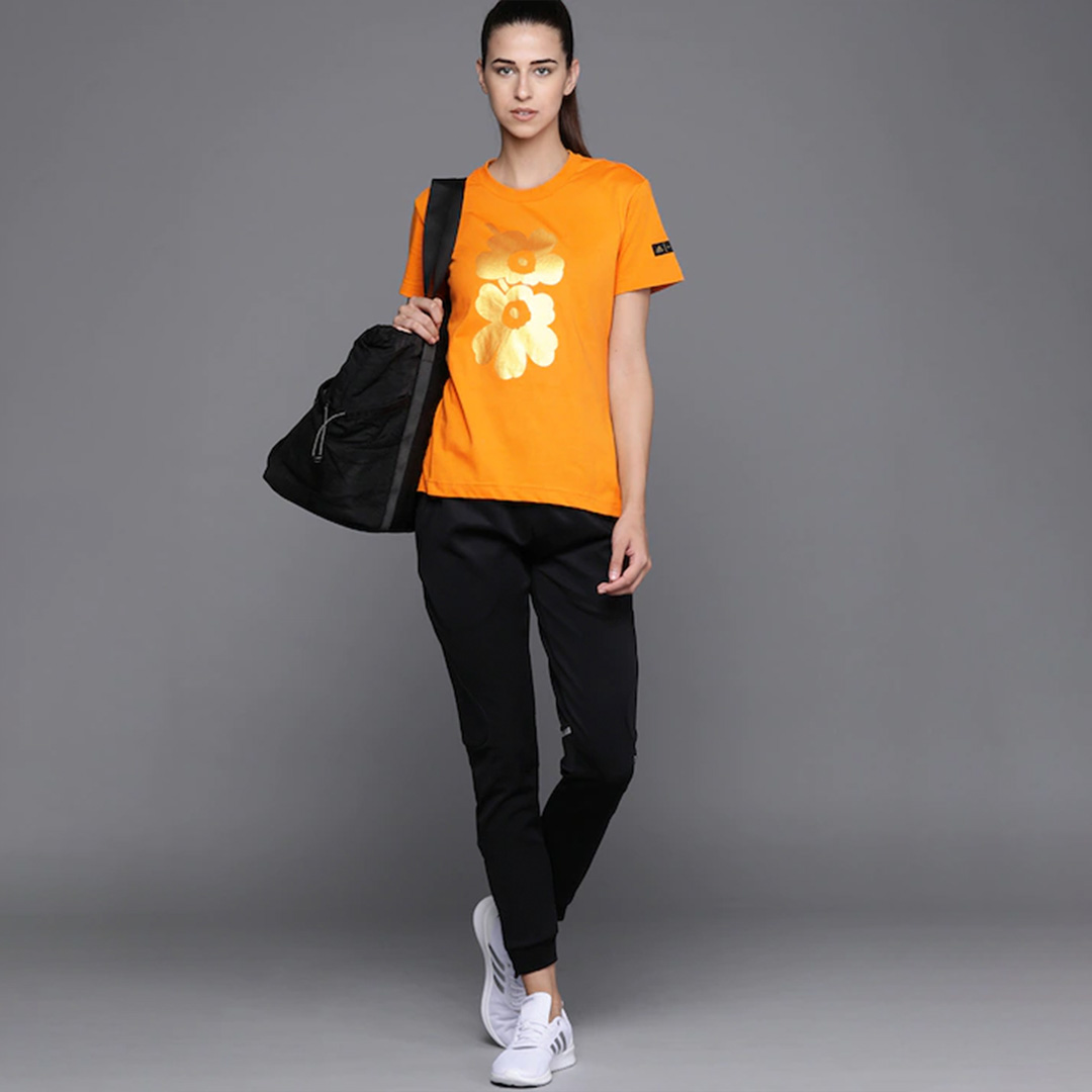Women Orange Golden Sportswear GFX2 Printed Pure Cotton Sustainable T-shirt