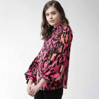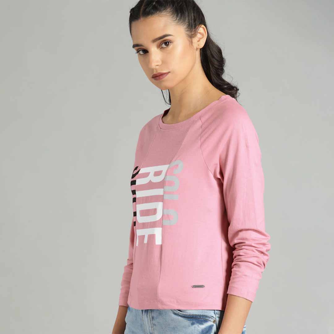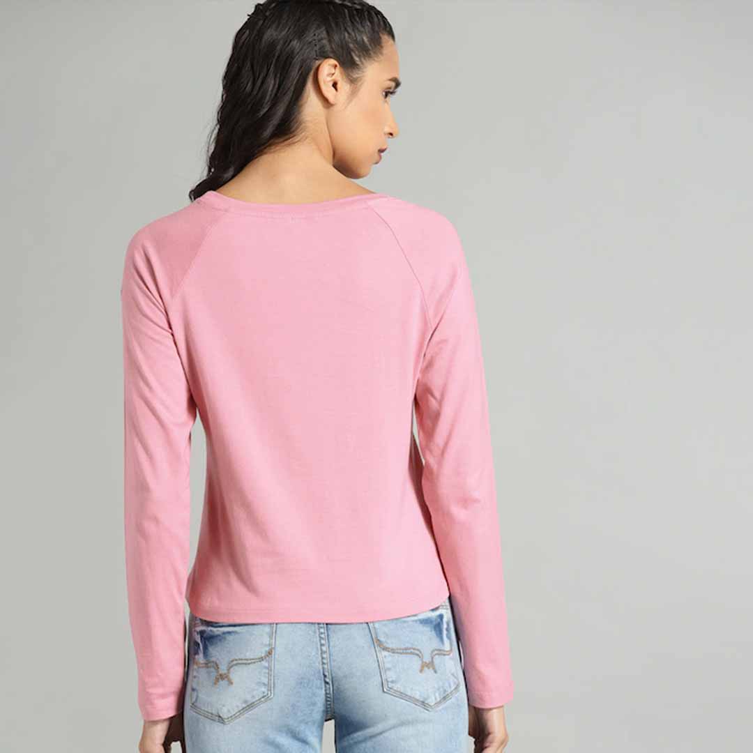 Women Pink Printed Round Neck Pure Cotton T-shirt
