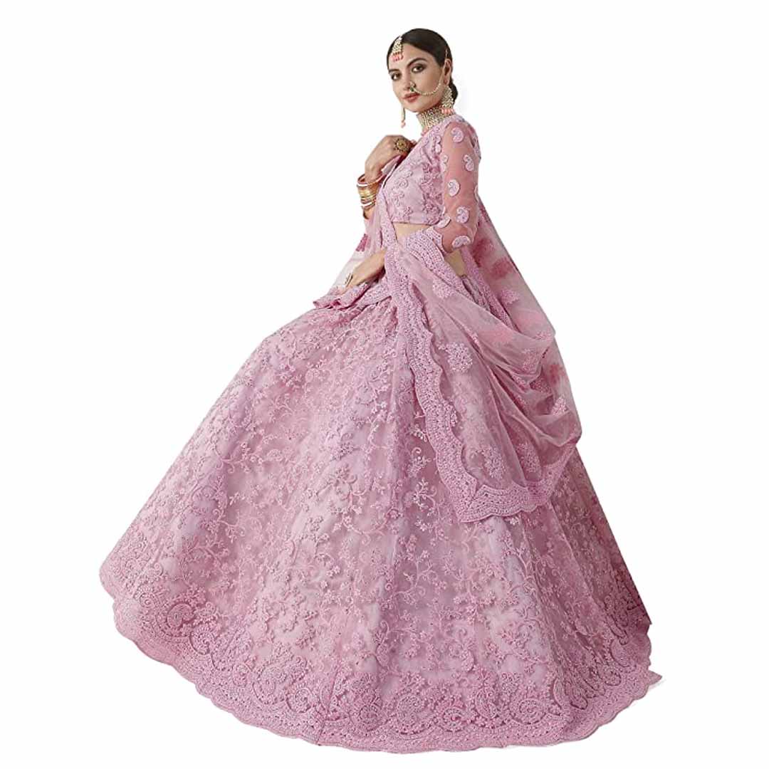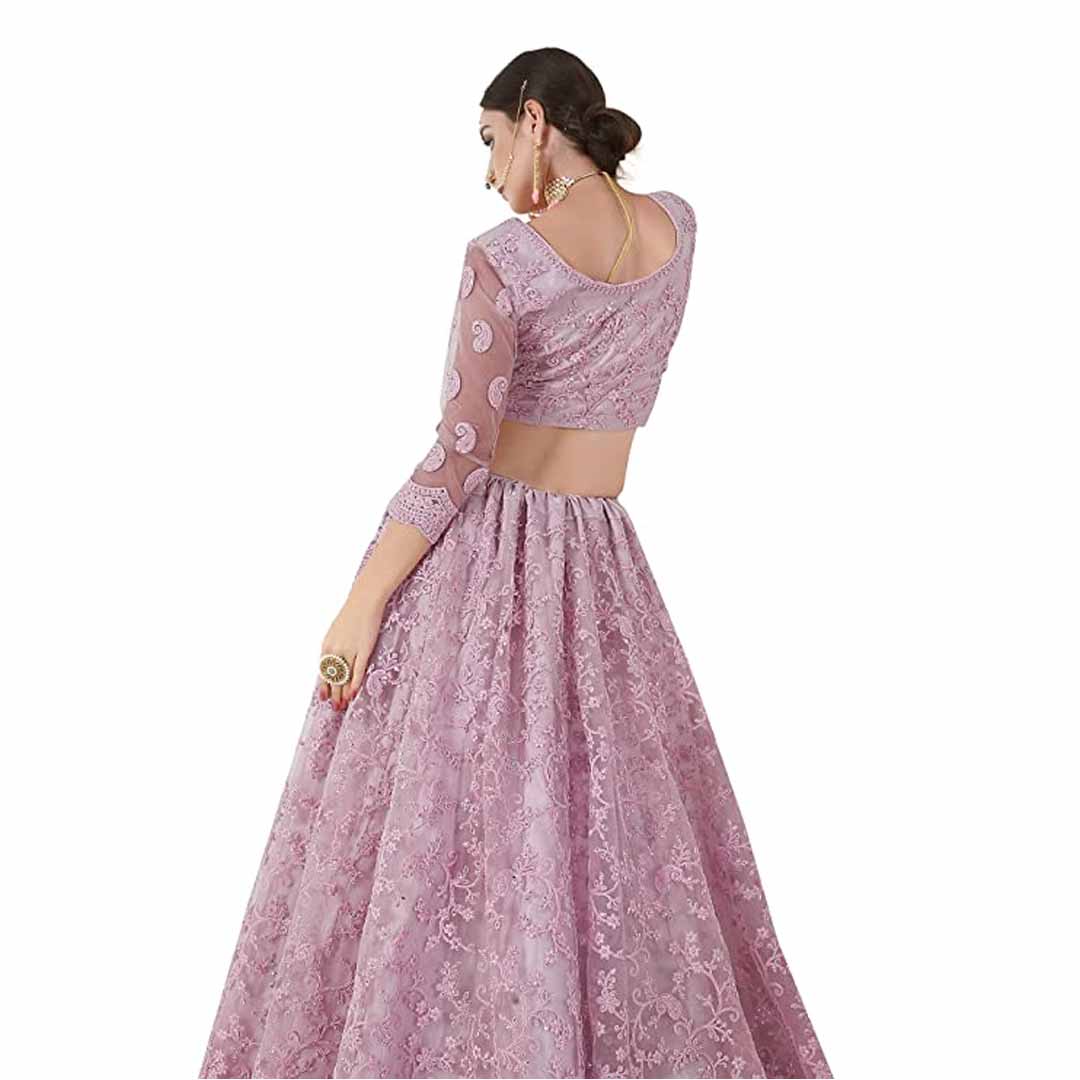 Women's Chain Stitch Semi Stitched Net Lehenga Choli