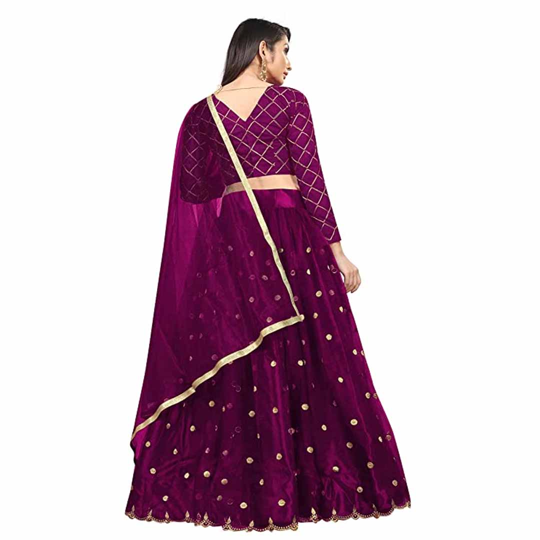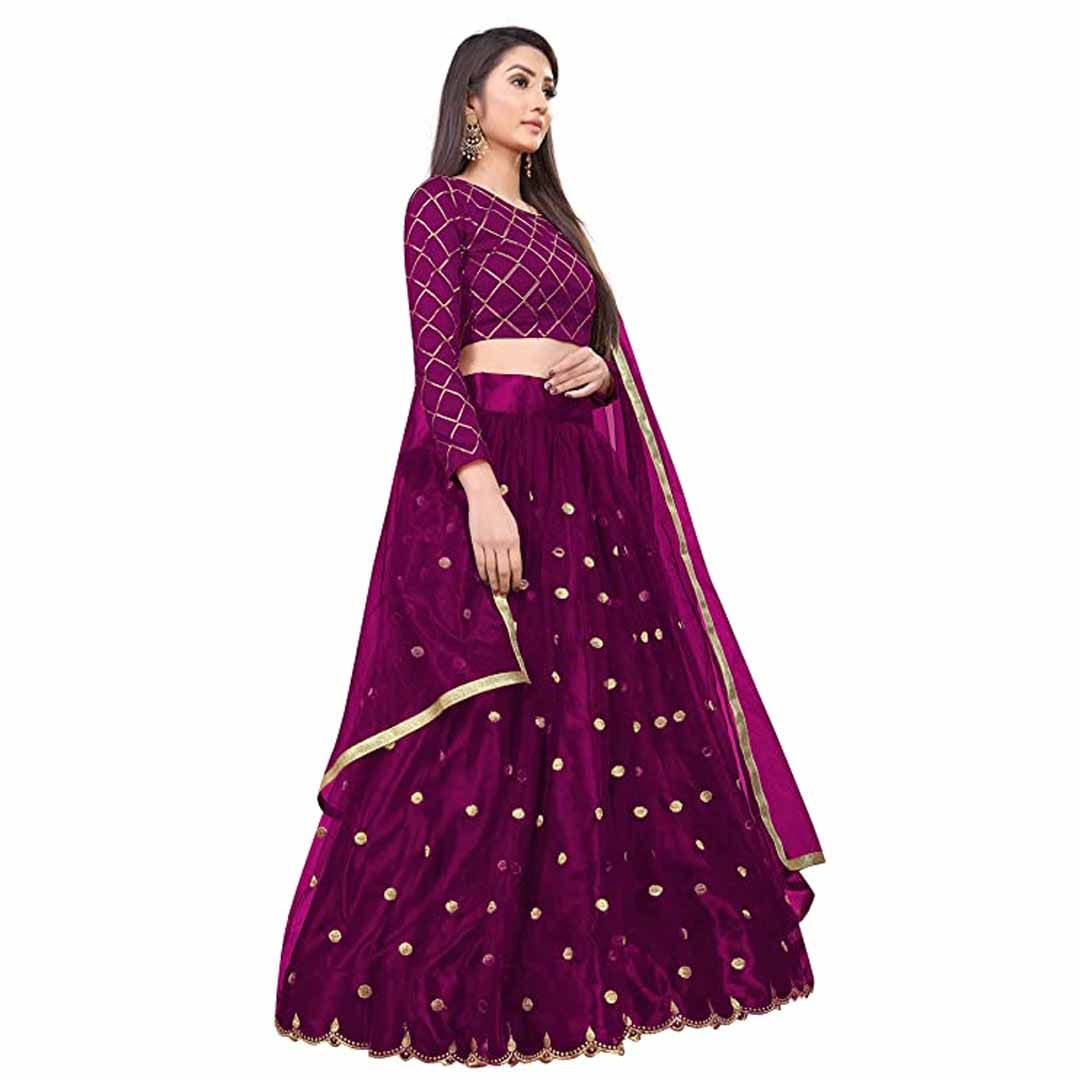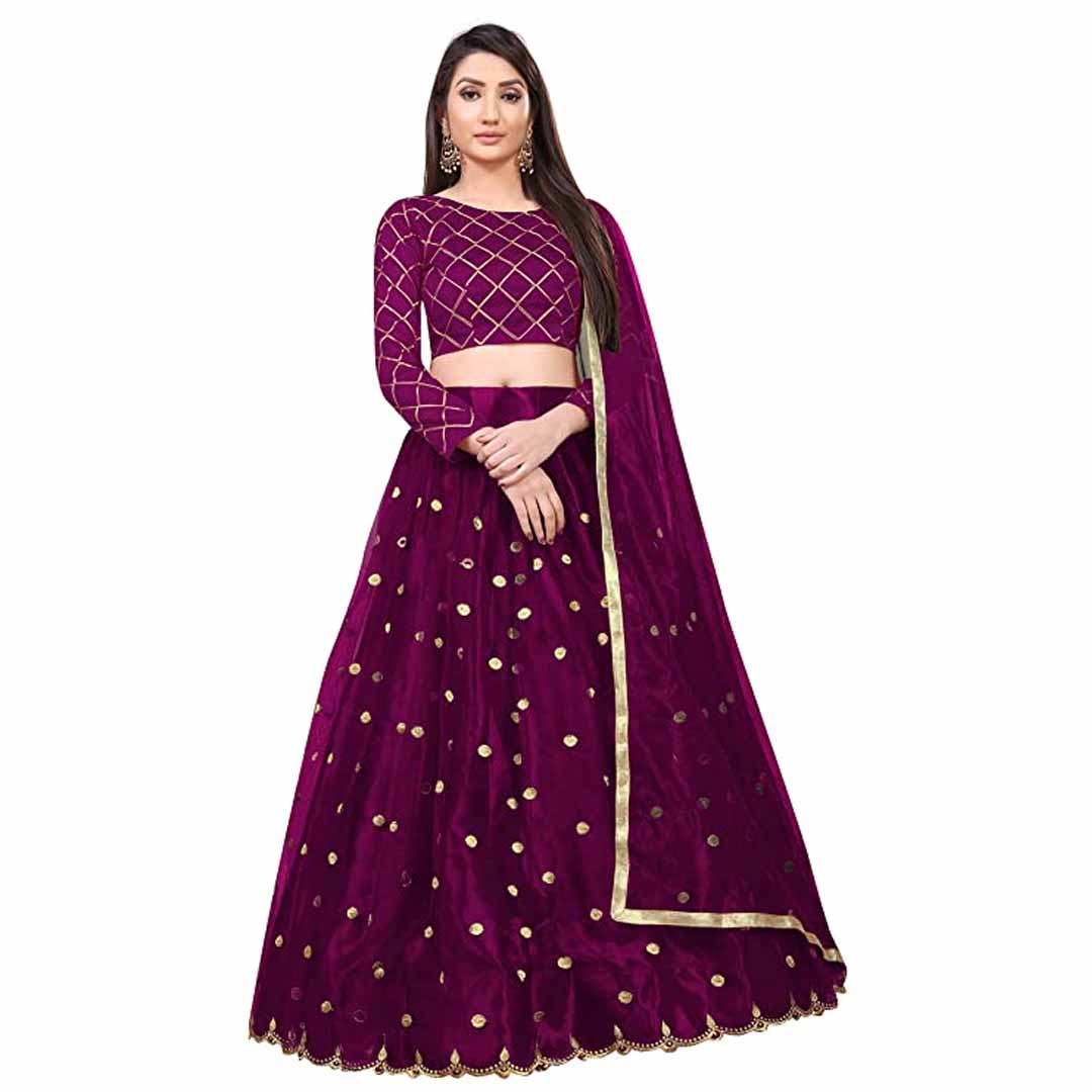 Sea Maroon & Gold-Toned EWhite & Golden Printed Semi-Stitched Lehenga & Unstitched Blouse with Dupatta mbellished Ready to Wear Lehenga Choli