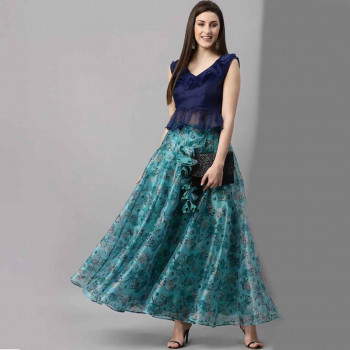 Women Turquoise Blue Fl...